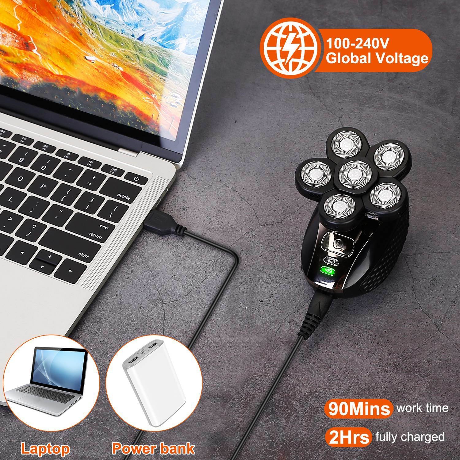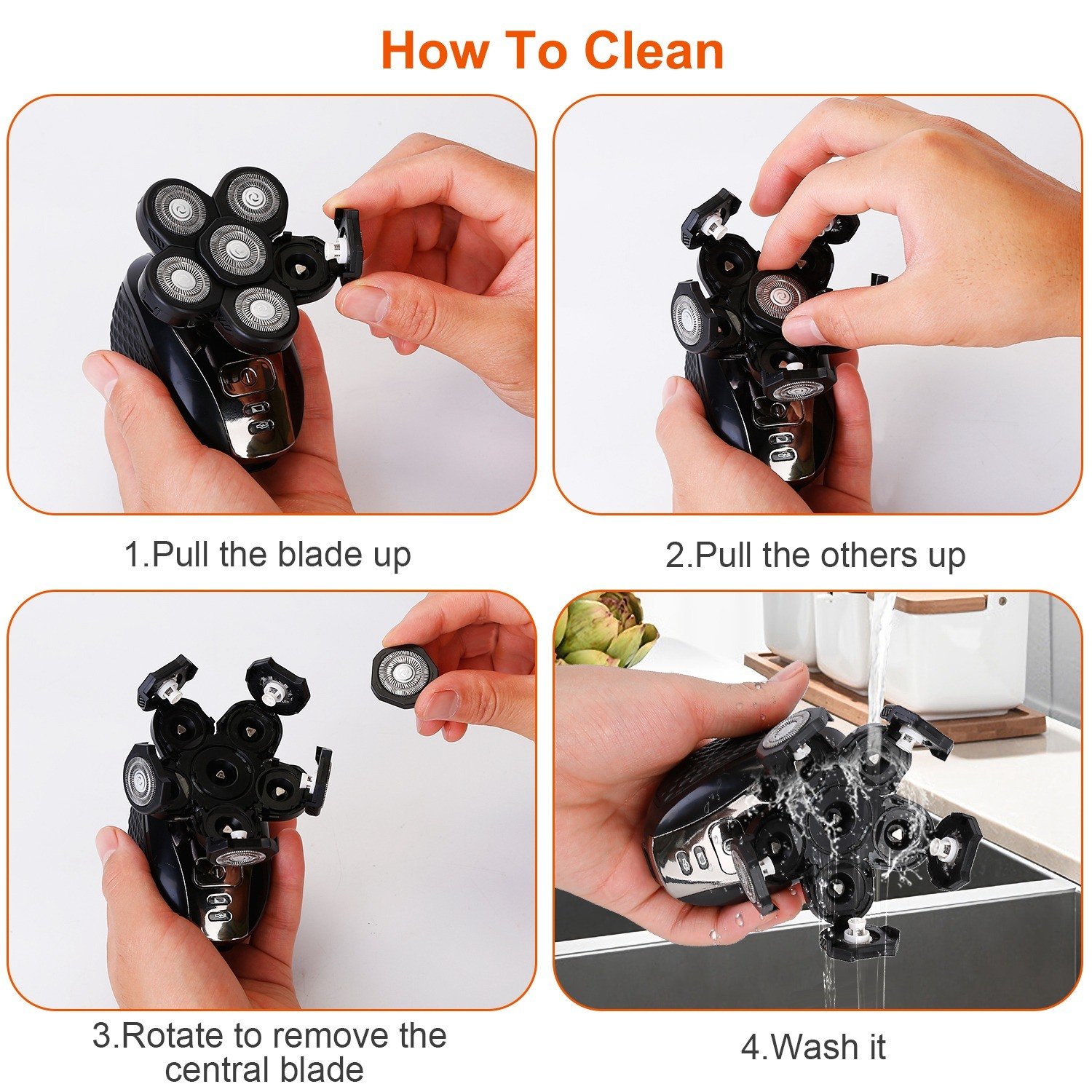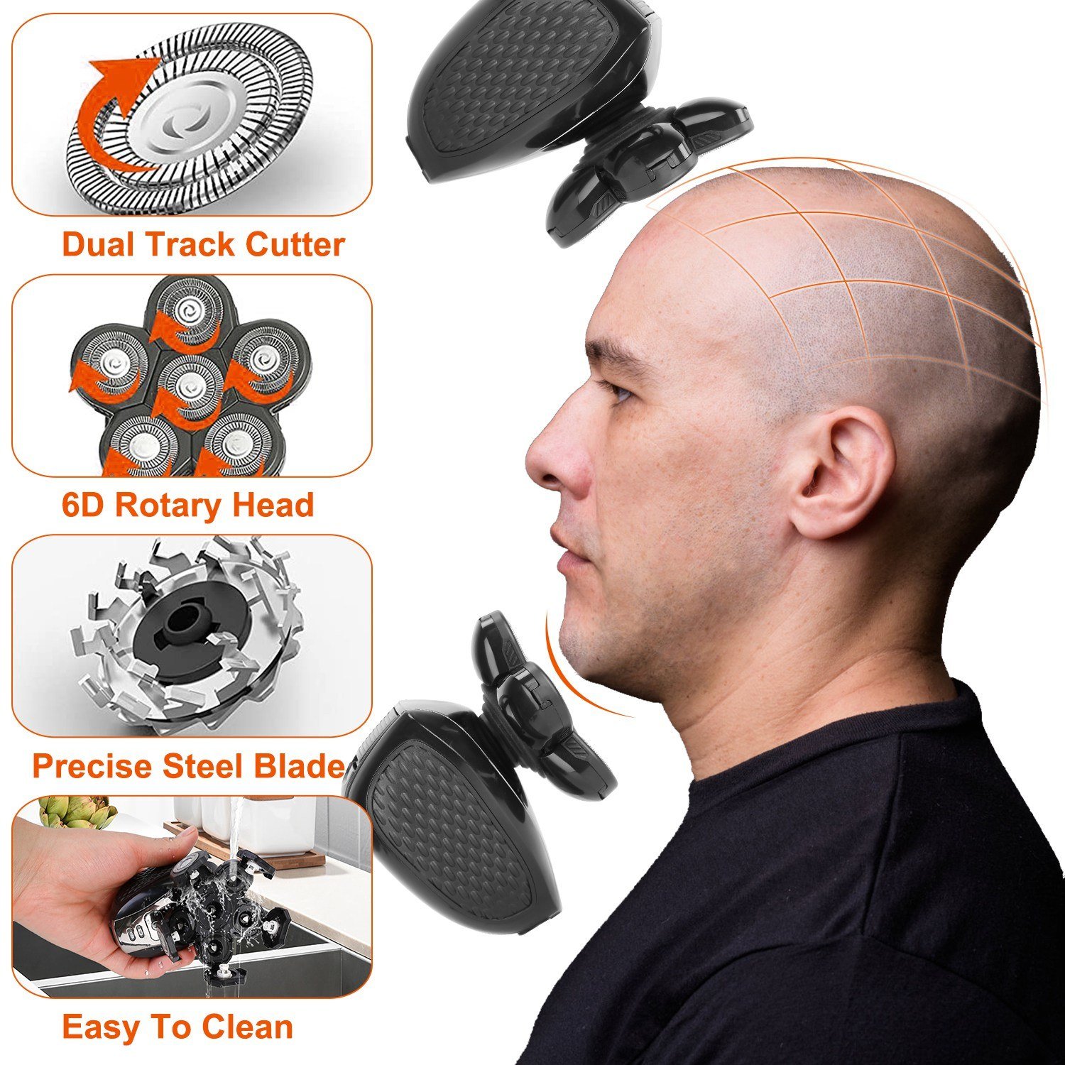 *6D Rotary Blade*:Makes shaving your head a breeze with its 6D flexible shaver heads working simultaneously. It can grasp hair in hard-to-reach areas; making shaving more efficient and convenient.