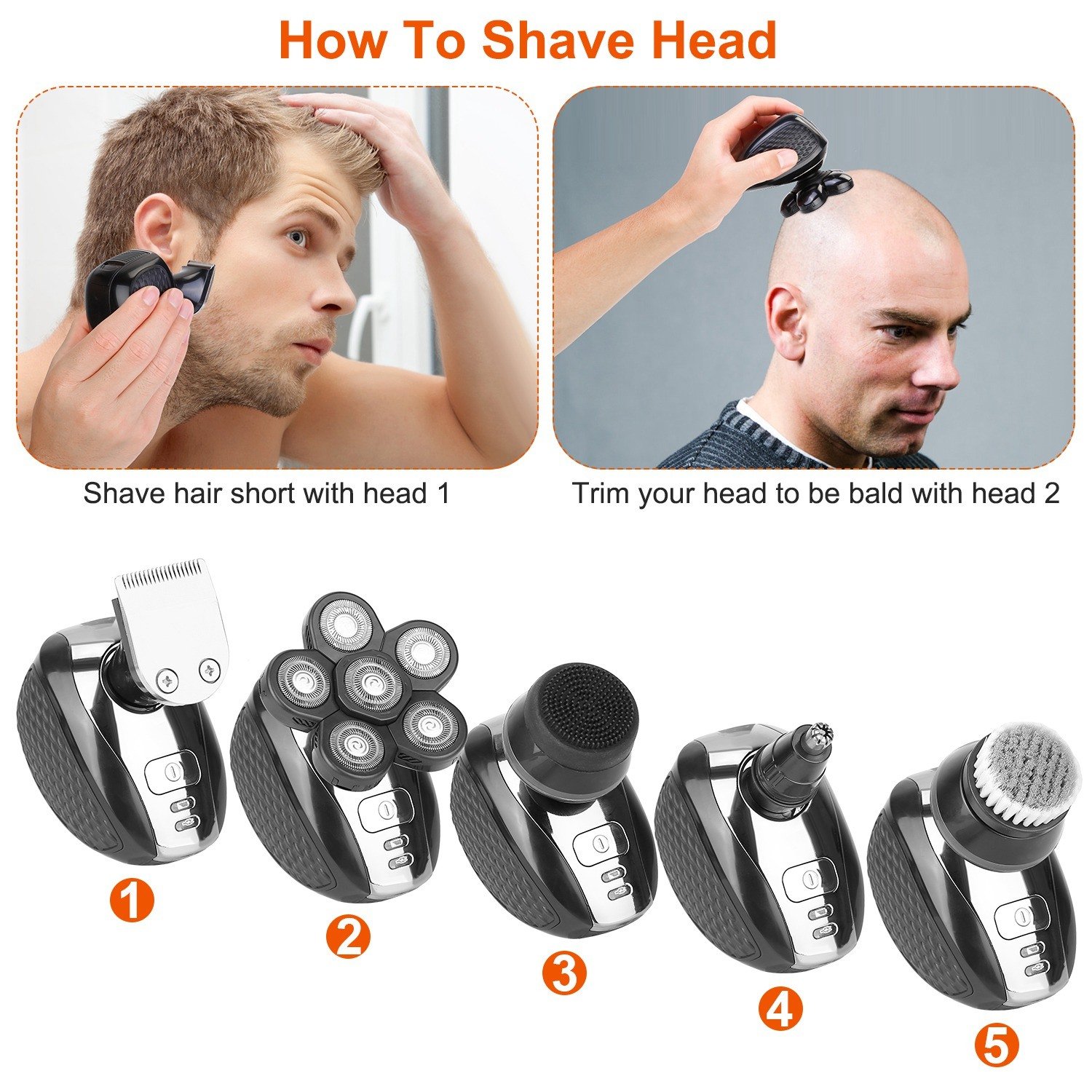 *Professional Shaver For Bald Men*:This 5 in 1 grooming kit contains 6D rotary shaver; nose hair trimmer; facial cleaning brush; precision trimmer; soft face sponge; and 3 limit combs of different sizes(3mm/5mm/7mm).Powerful enough to satisfy your facial shaving needs.
