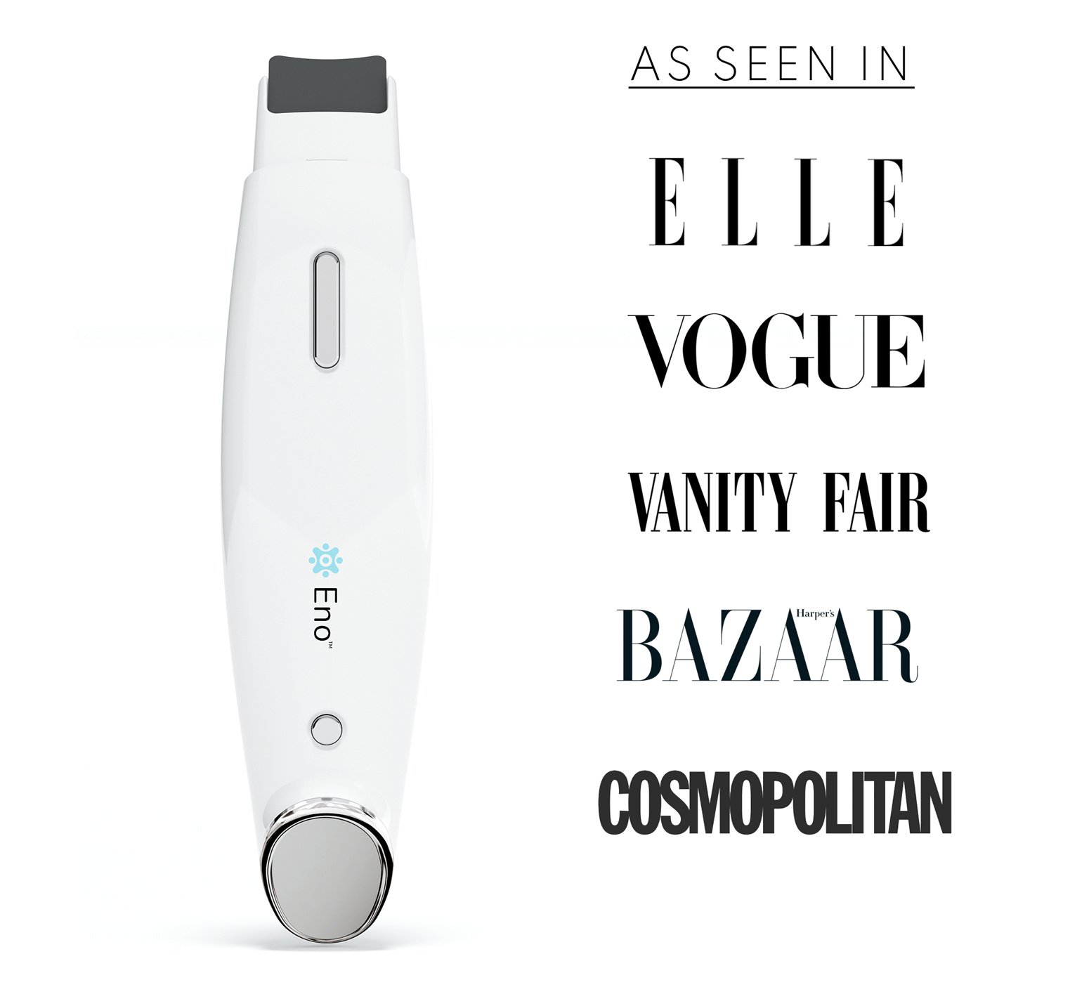 Expertly engineered by an award-winning designer; our multi-tasking Eno™ device is a handheld version of the tools used by estheticians worldwide.