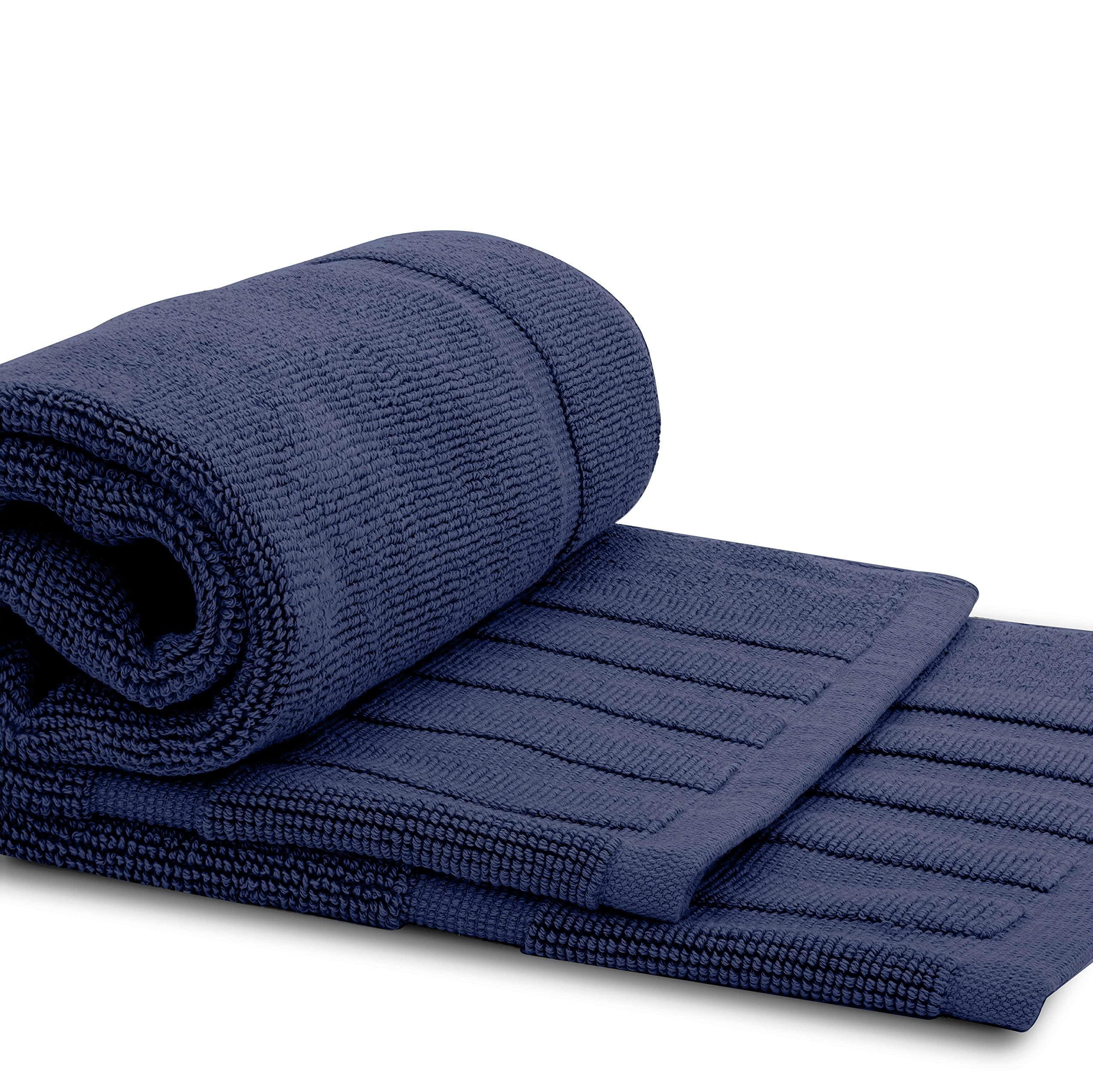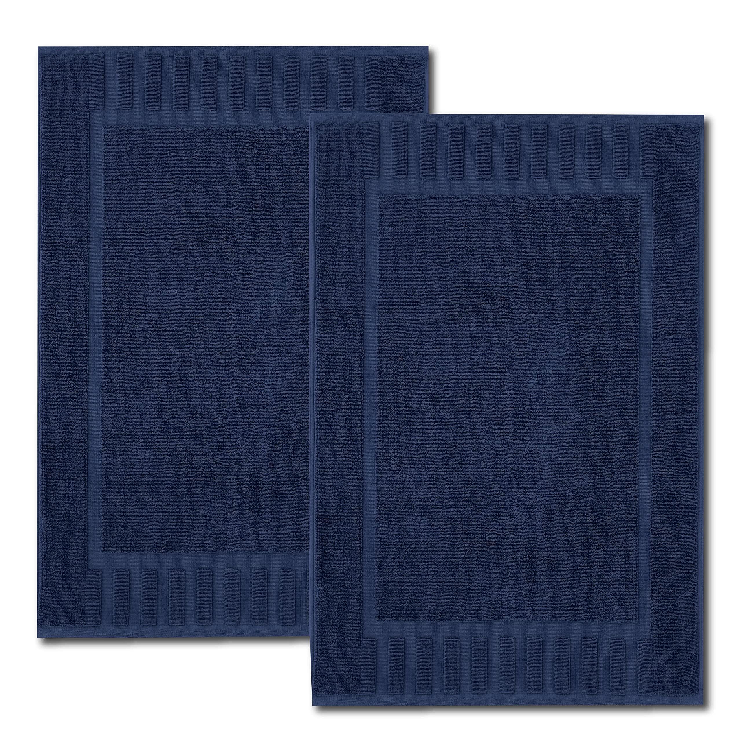 Luxury Bath Mat Floor Towel Set 2 Pack Absorbent Cotton Hotel Spa Shower Bathtub Mats 22 x34 in Navy Blue