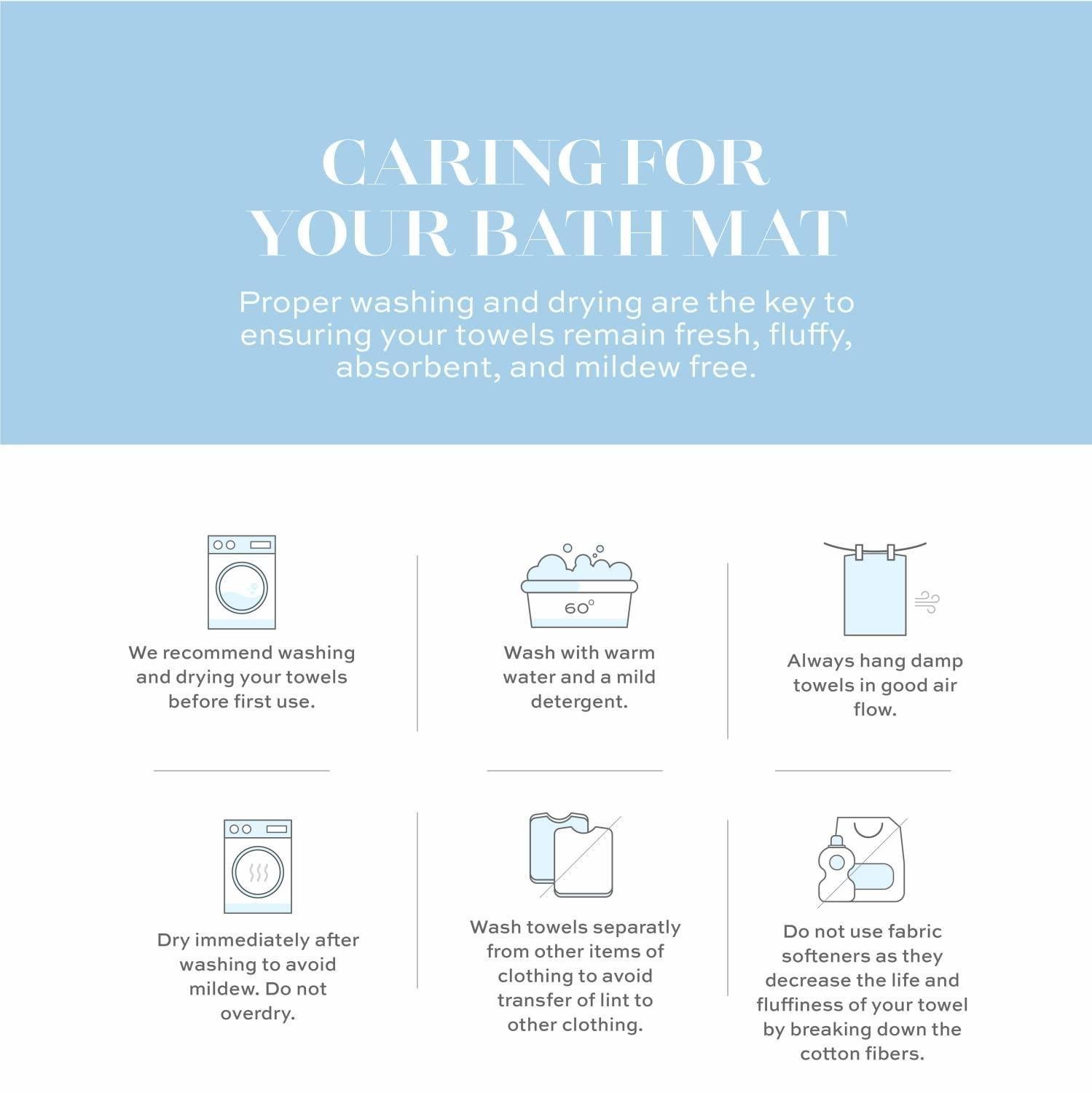 4.EASY CARE & FAST DRY - They are (ONLY WHITE bleach safe) Bath Tub Shower Mat that are FULLY REVERSIBLE non-rubber backing makes it easier to wash with other mat towels without ruining or causing damage to the quality bathmat set, and dry very fast too, Wash with ease without giving it a second thought.