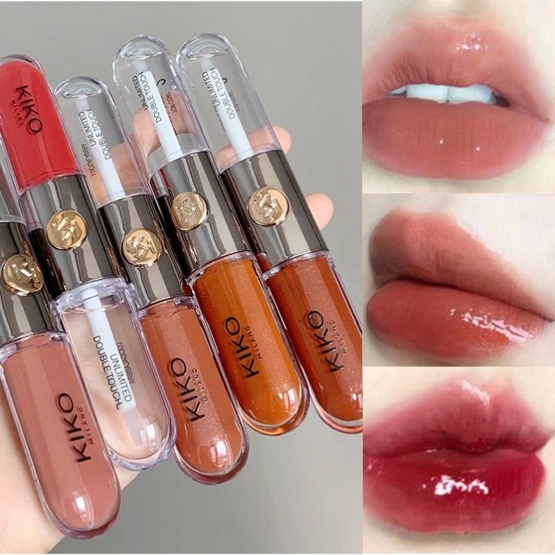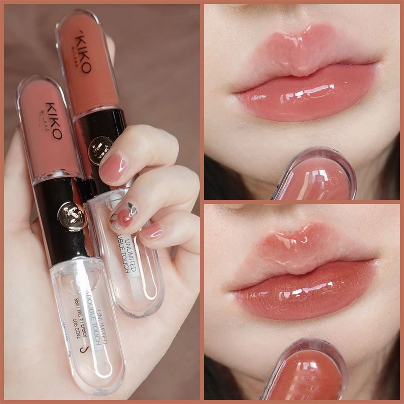 KIKO Make up Lip Oil Lip Glaze Non-Fading Lipsticks Makeup Gloss Milk Tea Mirror Transparent Lip Color Double Headed Lip Gloss